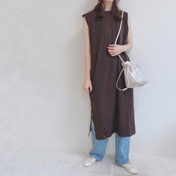 guのiラインワンピースって? 今回紹介するアイテムがこちら。 gu iラインワンピース ¥1,990+税 4カラー展開:ブラック、ナチュラル、ブラウン、ブルー シンプルできれいなシルエットが女性らしさとリラックス感を引き立たせてくれるguの人気ワンピース。 GUのAラインワンピースは、ダークブラウンカラーも素敵。 1枚でサラッと着て、上からゆったりシルエットのシャツを羽織ったスタイルは、この春簡単におしゃれ映えするおすすめの着こなしです♪ ダークブラウン×ミントグリーンの組み合わせは、トレンド感たっぷりなだけでなく細見えも叶えてくれます! ダッドスニーカーやドロストバッグで全体の雰囲気を整えれば、大人なAラインワンピース (半袖) GU Aラインのデザインと半袖で、大きくなったおなかはもちろん気になる二の腕もカバーしてくれます。 11色のカラーバリエーションと税抜990円という手ごろな価格なので、色違いで複数枚買ってもよさそうですね。 綿100%でお手入れ簡単。 また、ちょっとした小物を入れられるポケット付きなのもうれしいところ。 1枚でさらっと着たり、ワイドパンツやプリーツ系